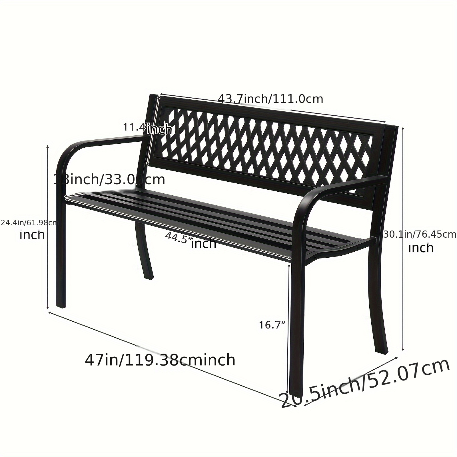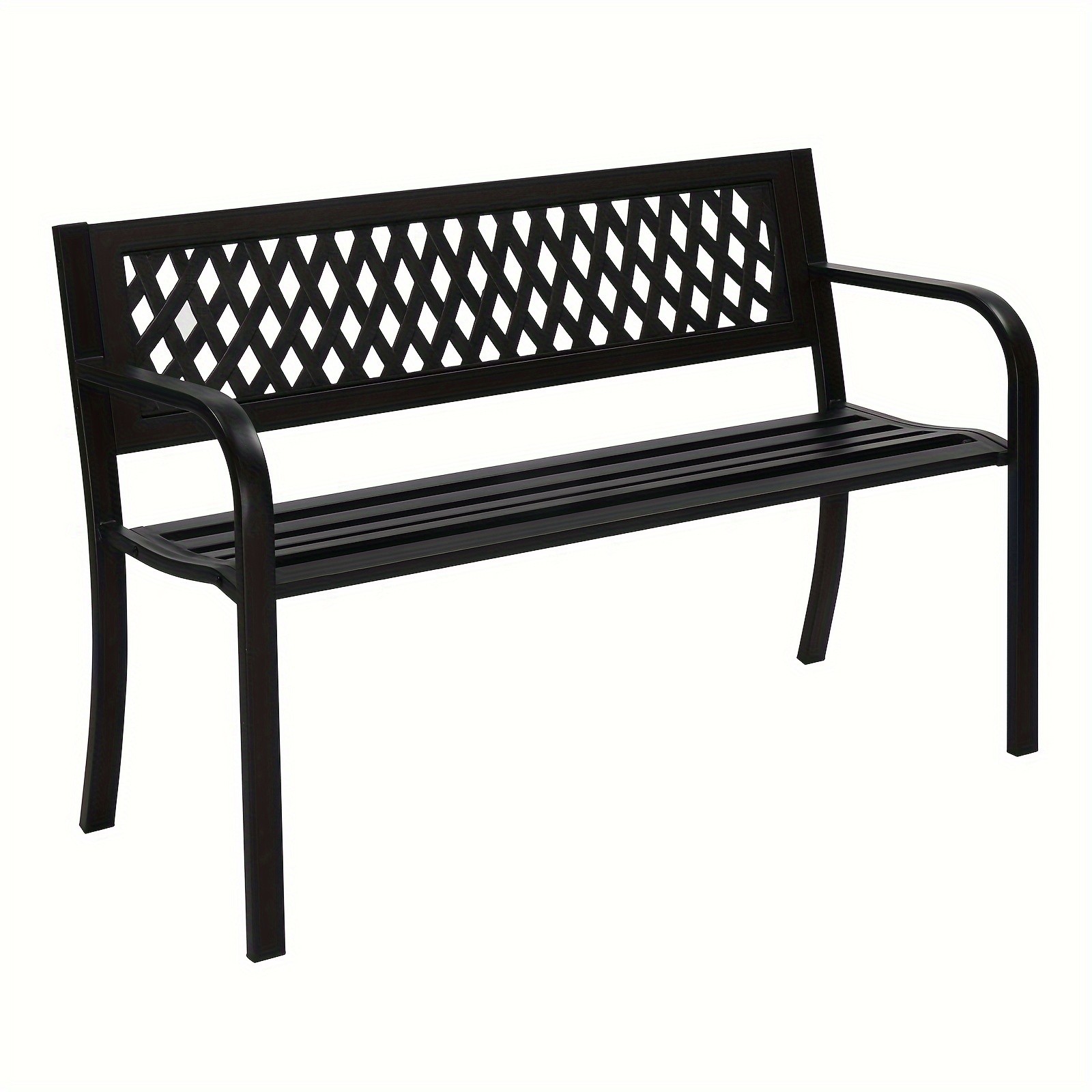 1pcc 47in PVC Mesh Backrest Iron Bench, Black, Outdoor Furniture