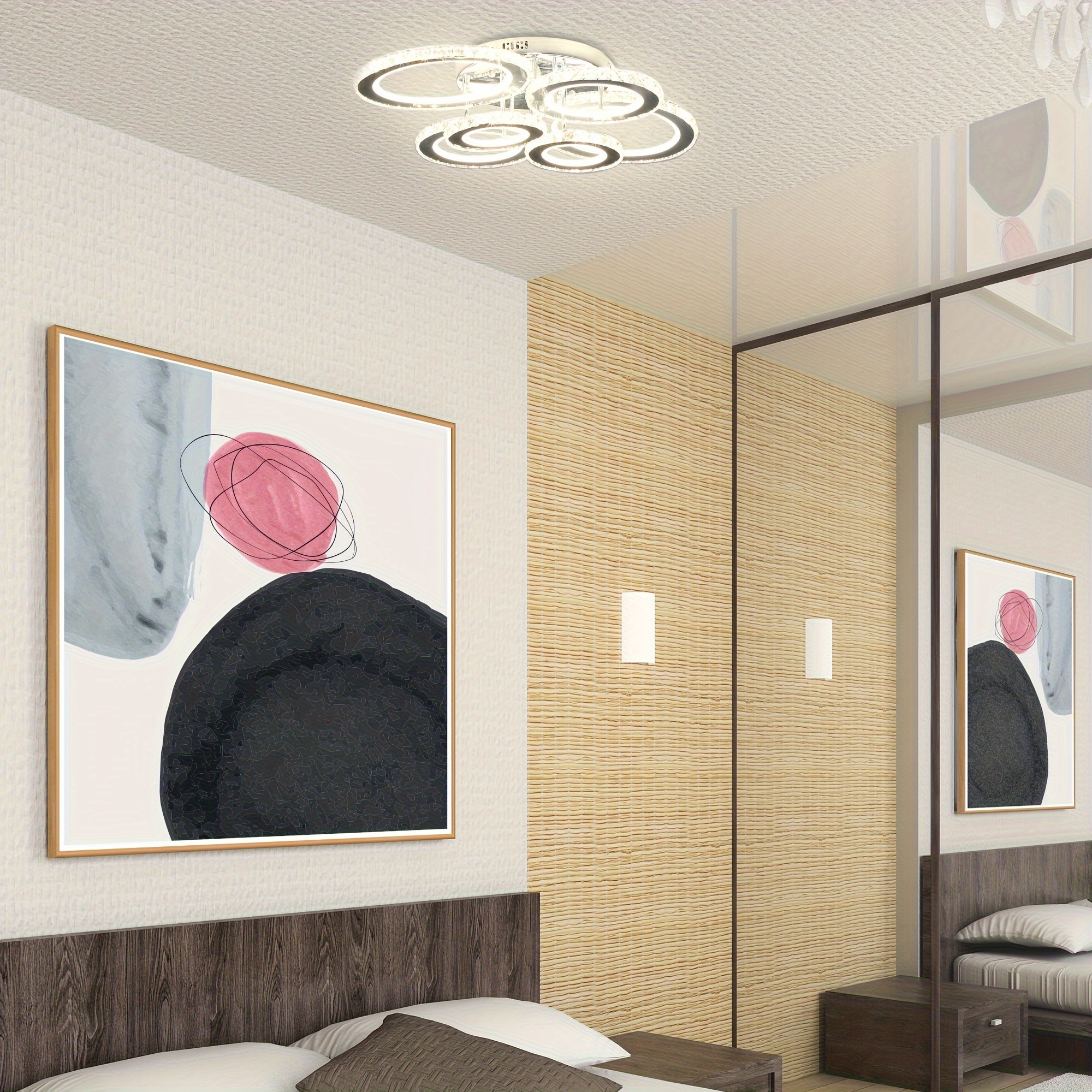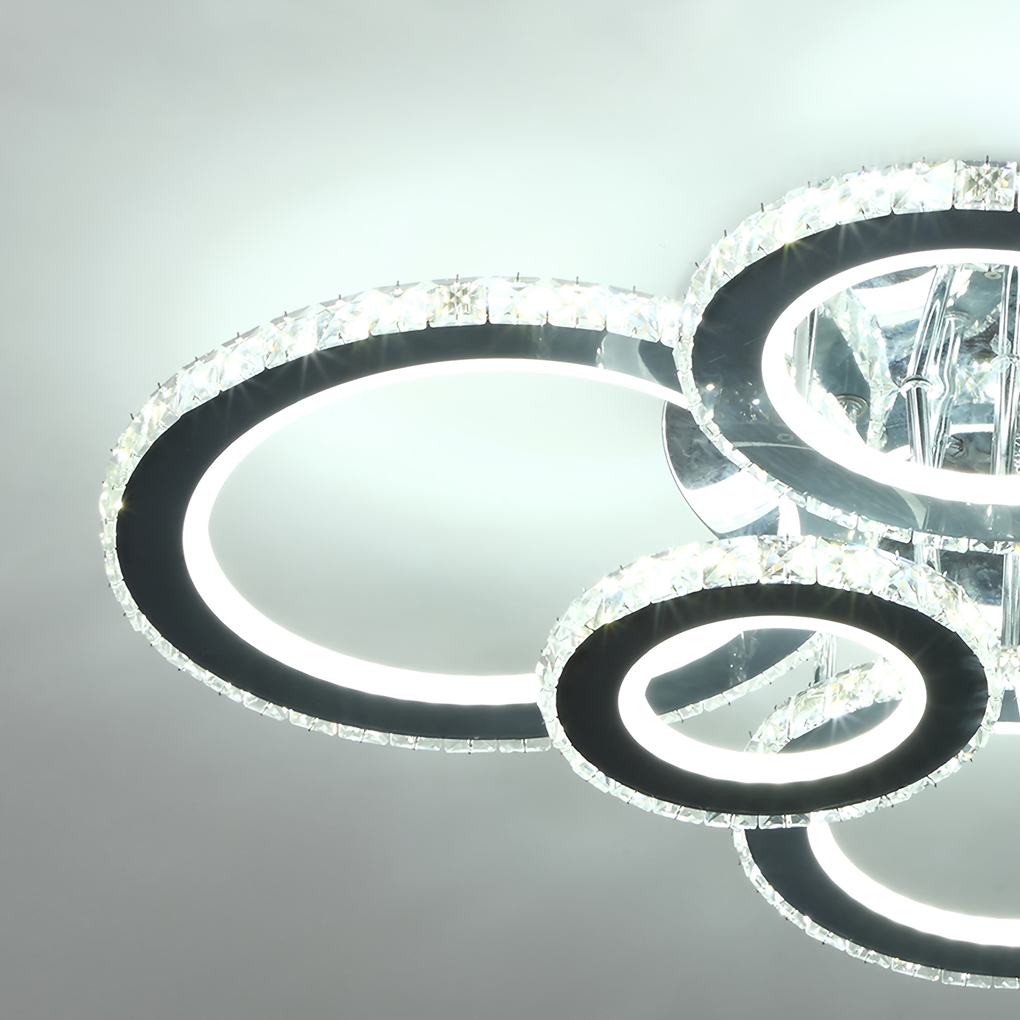 HOMCOM Elegant LED Chandelier with 6 Rings, Ceiling Light with Cool White Lighting for Living Room, Dining Room, or Bedroom, Silver
