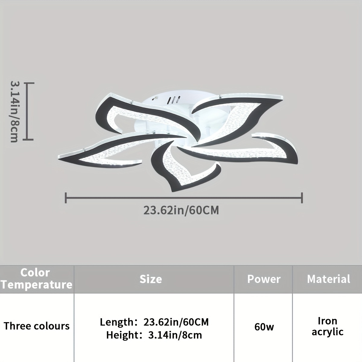 Body material: iron + LED chip + aluminum + acrylic