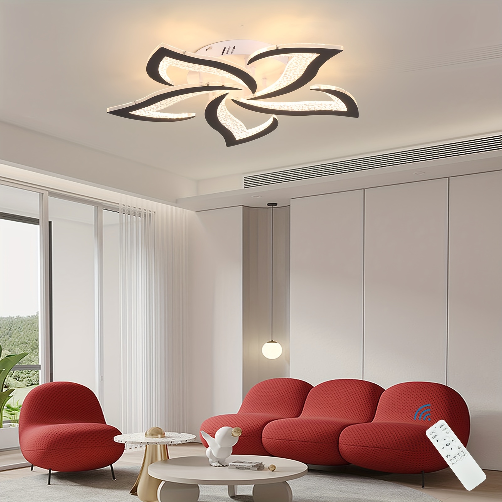 Modern LED Ceiling Lights, Black Dimmable Flower Shape Ceiling Light Chancelier, Flush Mount Ceiling Lamp Lighting Fixture with Remote Control for Living Room Dining Room Hallway Kitchen